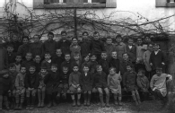 Retrato de grupo en plano entero de 43 alumnos de las escuelas de Garralda, alumnos de José Velasco. Están dispuesto en 3 filas, se puede identificar en la primera fila, de izquierda a derecha: tercero Juan de casa Alchat, cuarto Faustino de casa Pintor, sexto Domingo de casa Cerrajero, séptimo José de casa Jauntolanda, noveno Enrique de casa Maya y décimo José María de casa Txirra. En la segunda fila: cuarto Félix de casa Maya, quinto Joaquín de casa Urrutia, séptimo Antonio de casa Dambolín, décimo Emiliano de casa Chimurria, undécimo Martín de casa Minondo y duodécimo Angelito de casa Txirra. En la tercera fila: tercero Pedro de casa Juan García, cuarto Emilio de casa Zubiri, séptimo Modesto Orbaiz, noveno Loperena de casa Arive y undécimo Alfonso de casa Carrejo.