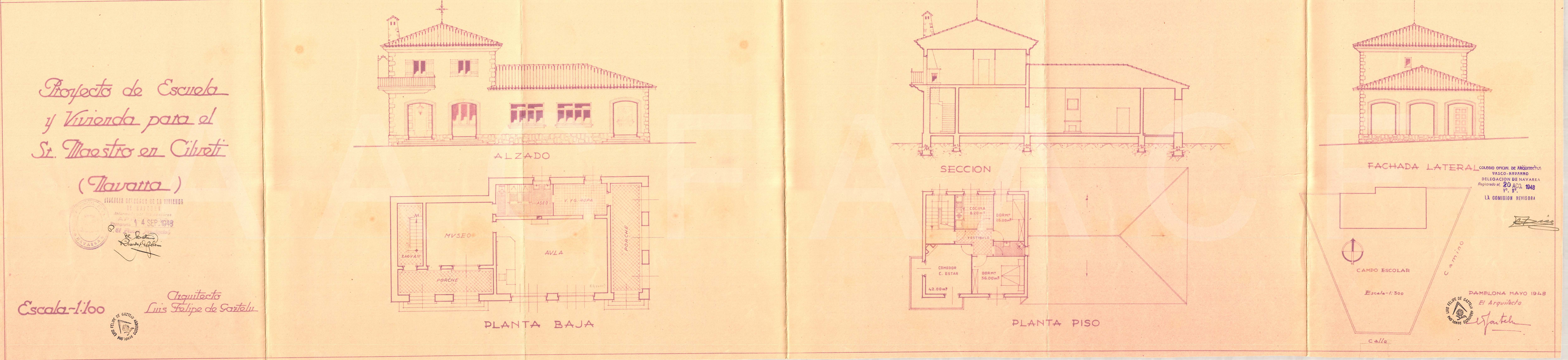 Aprobación de proyectos de vivienda libre. Obra nueva. 1 edificio para escuela y casa para el maestro en Cilveti. Ayuntamiento de Erro