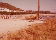 Construcción del nuevo puente flotante sobre el río Arga en Funes. Trabajos de cimentación de pilares.