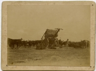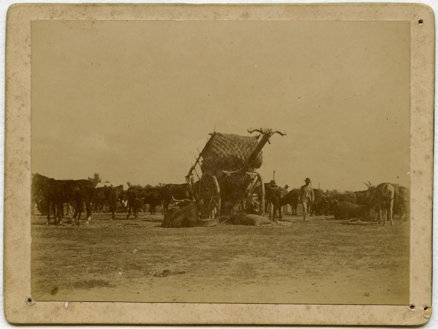 • Título: Feria de Sevilla. Carro entre animales en el recinto ferial.