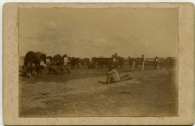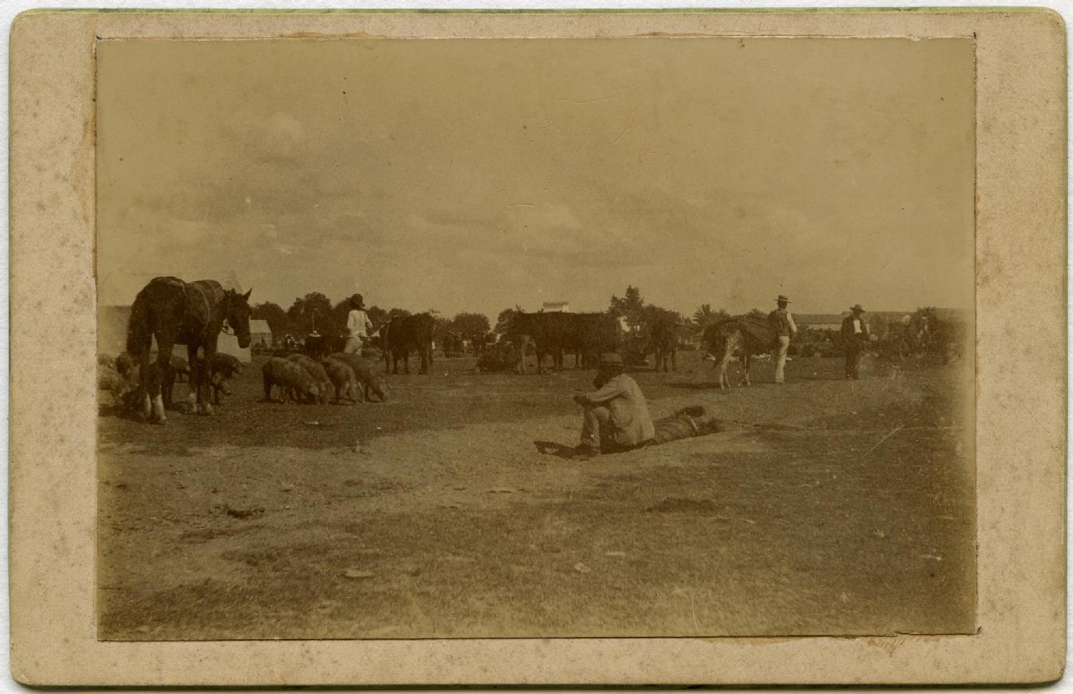 • Título: Feria de Sevilla. Explanada con caballos, cerdos y bóvidos.