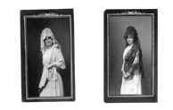 Reproducción de 2 fotografías con retratos de estudio de una amiga del matrimonio Altadill Aldave llamada María Natalia, realizadas por el estudio fotográfico Franzen Art Studio de Madrid. A la izquierda, retrato fotográfico en plano americano de la mujer, con vestido y mantilla blancos. A la derecha, retrato fotográfico en plano americano de la mujer, con vestido blanco y mantilla negra.