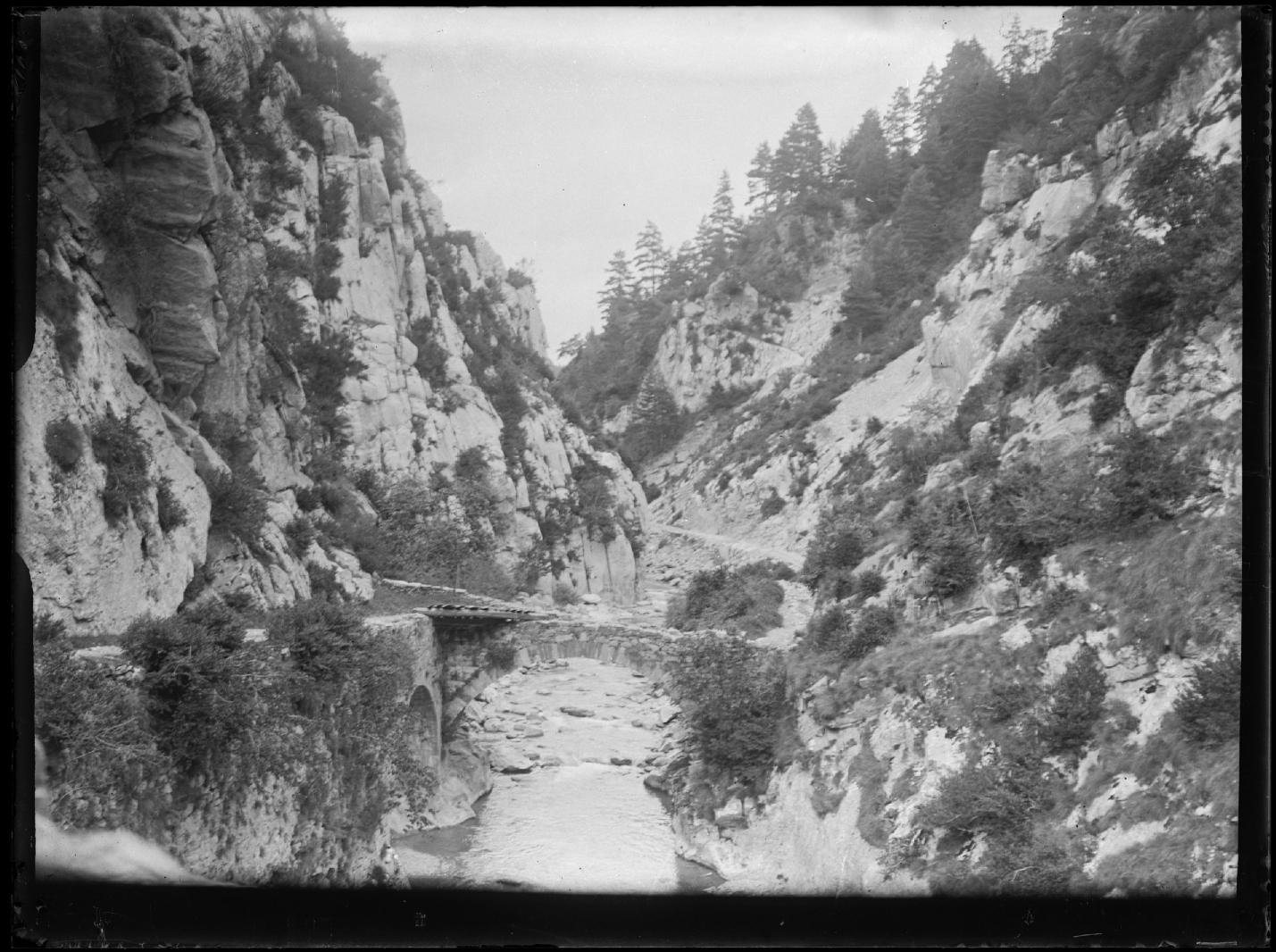 Julio Altadill regresó a Navarra tras servir como profesor en la Academia del Cuerpo Administrativo del Ejército de Ávila hasta 1891. La imagen se reprodujo en una publicación en 1918 con el pie de imagen: "Valle de Roncal. La foz de la gruta de Ibon ó Ateas de Belagua".