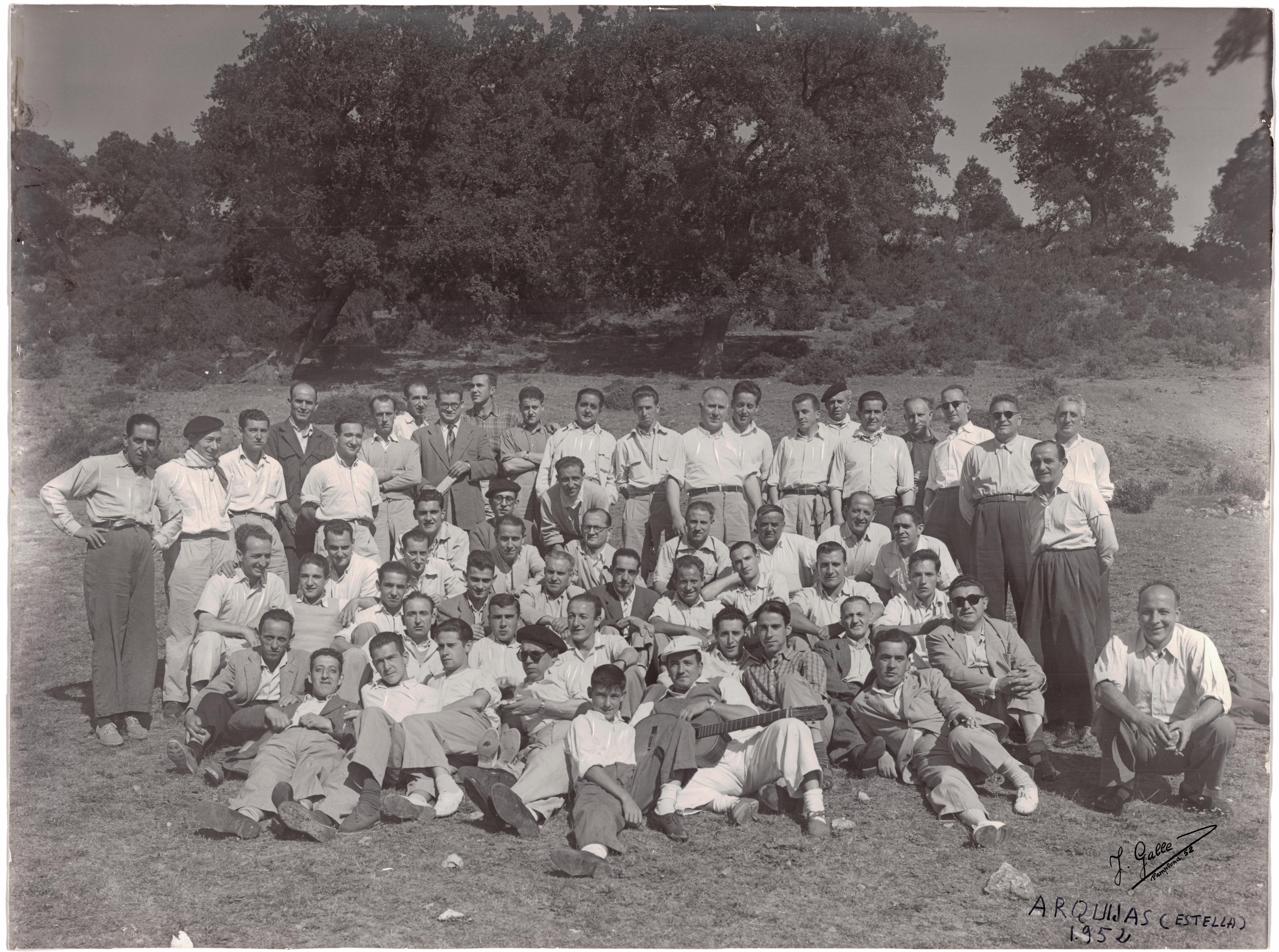 En la parte inferior, texto manuscrito: ARQUIJAS (ESTELLA). 1952. Firma del fotógrafo: J. Galle. Pamplona 52