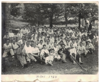 Grupo de hombres de Los Amigos del Arte de excursión en la localidad de Iribas, Larraun.