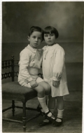 Retrato en plano entero de María del Carmen, en pie, y José Ignacio Iraizoz Astiz, sentado.