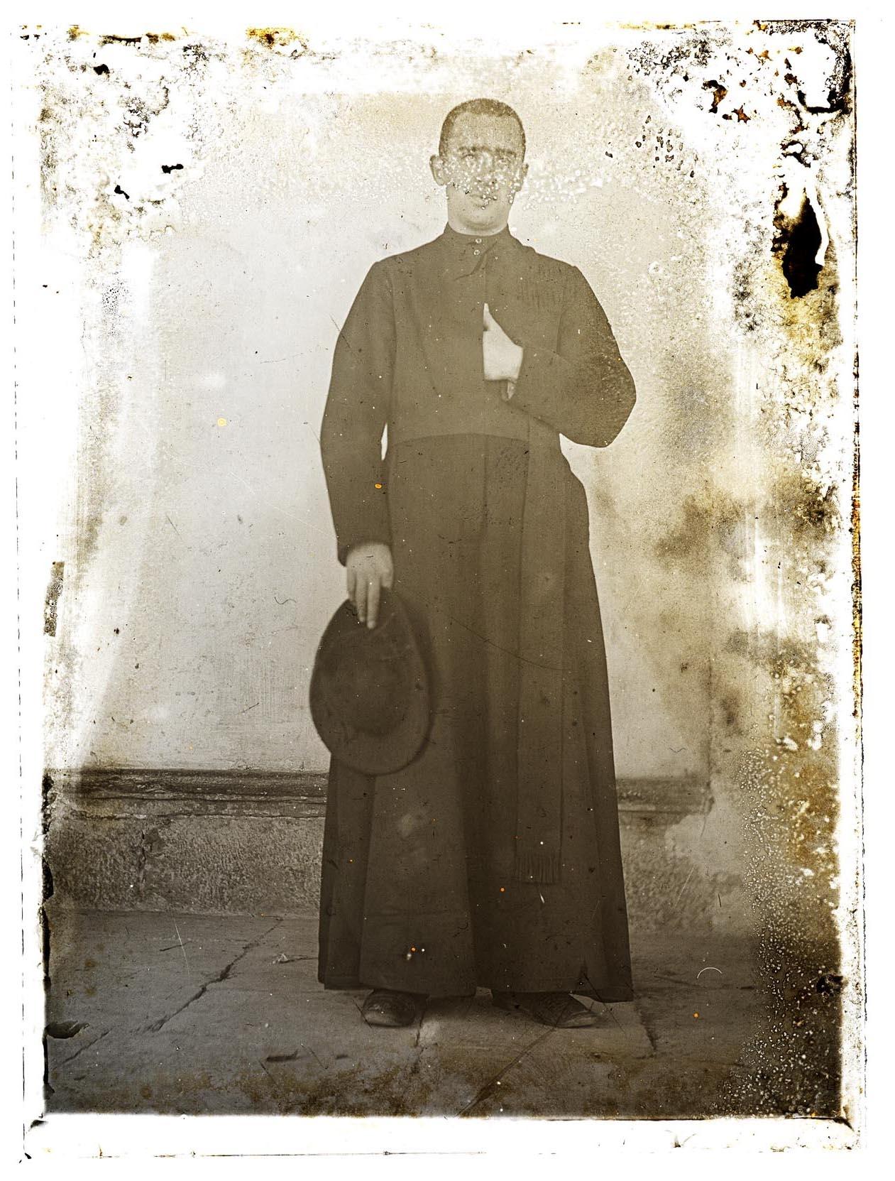 Martín Iraizoz Gastesi fue hermano de Francisco y cuñado de María Vicenta Astiz Iriarte. Imagen similar al negativo FOT_IRAIZOZ_ASTIZ_0030. Posible positivo FOT_IRAIZOZ_ASTIZ_0434. Deterioro por agua con pérdida de materia en la capa de emulsión.