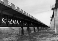 Vista general del puente de la carretera Marcilla - Villafranca (actual NA-660) sobre el río Aragón, en el término municipal de Marcilla, tomada desde el lecho fluvial hacia el noreste. En primer término, la estructura de hierro del puente sobre parejas pilares, con tablero superior y pretiles de hormigón. A la derecha, el puente de hormigón de la línea de ferrocarril Castejón - Alsasua. Al fondo, la chopera del término del Puente.