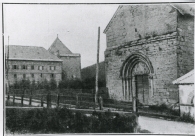 Real colegiata de Santa María de Roncesvalles. Acceso al conjunto desde el sur, fotograbado publicado en la revista ilustrada "La Esfera".