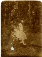 Veraneo de la familia Altadill Aldave en Burguete. Jenara Altadill Aldave en un bosque de hayas.