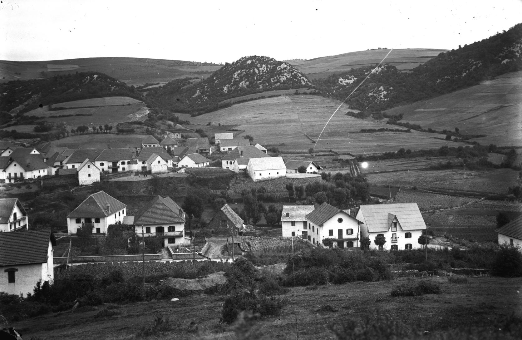 Plano picado de la calle Antonio Aróstegui de la localidad de Garralda, tomada desde Erremutxiloa en el sur. De izquierda a derecha, casa Ezkerrena, casa Juantoladeina, la borda de casa Capitán, hoy desaparecida, Casa Herrero y Casa Cornelio.